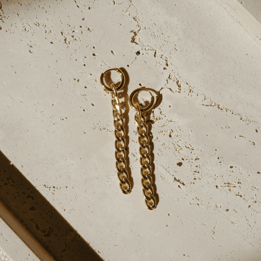Entdecke die SARDEGNA Ketten Ohrringe in Gold – elegante Statement-Ohrringe mit abnehmbaren Ketten-Charms.