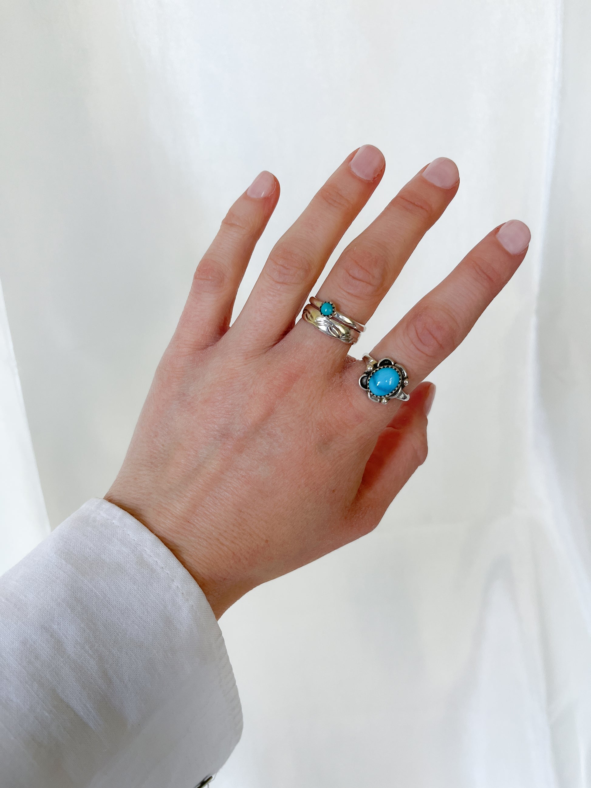 WAPI bedeutet „Glück“ in der indianischen Sprache der Navajo. Der Türkis ist in einer verspielten Fassung gehalten und hat eine leicht ovale Form. Hergestellt aus 925er Sterlingsilber, handgefertigt mit Liebe zum Detail vom Navajo-Silberschmied Anthony in New Mexico (USA).