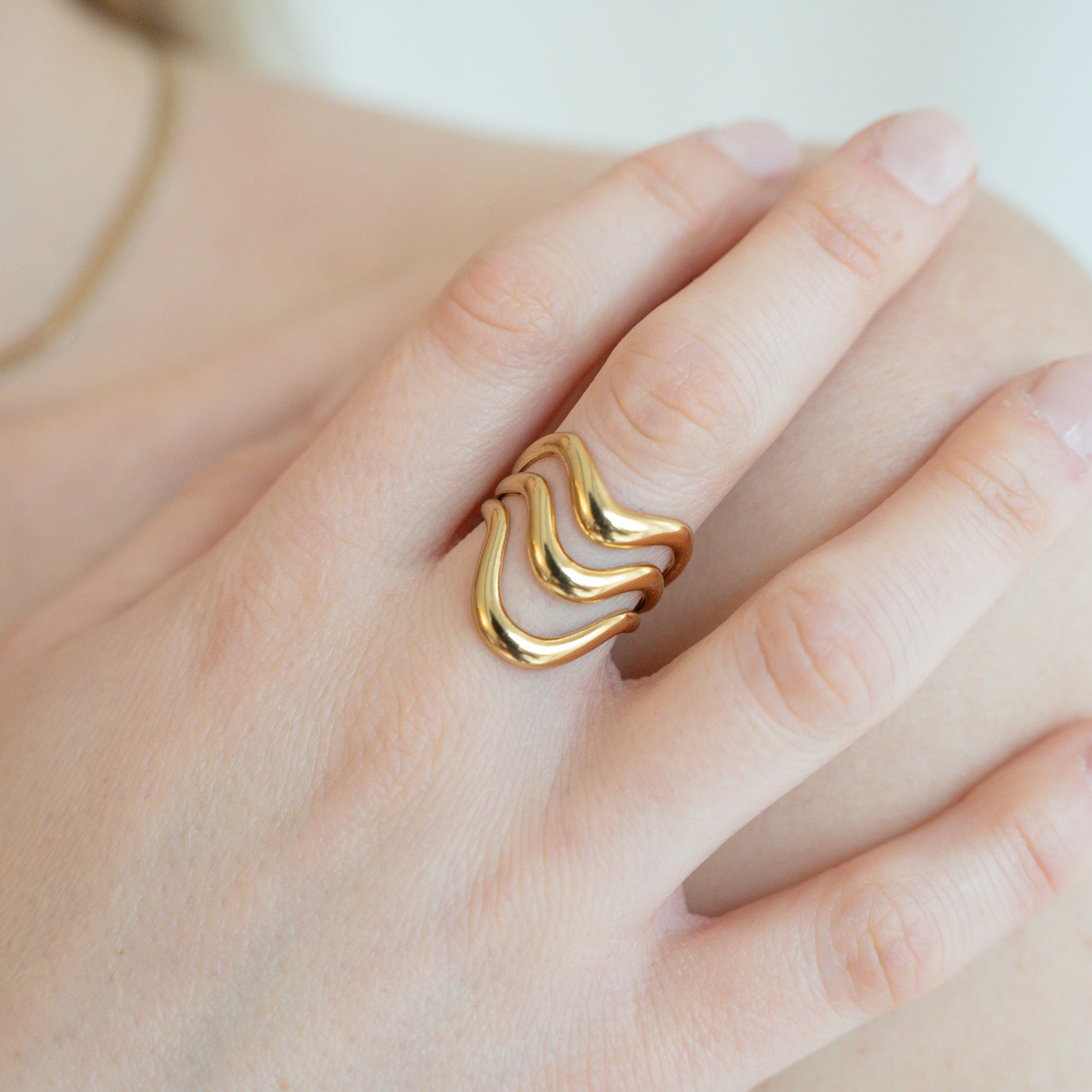 Der verstellbare PALO-Ring besticht durch sein minimalistisches Wellendesign und ist ein elegantes Statement-Stück für jeden Anlass. Durch leichtes Biegen der Enden lässt sich die Passform ganz einfach auf die gewünschte Größe anpassen – so verbinden Sie Funktionalität mit Stil.