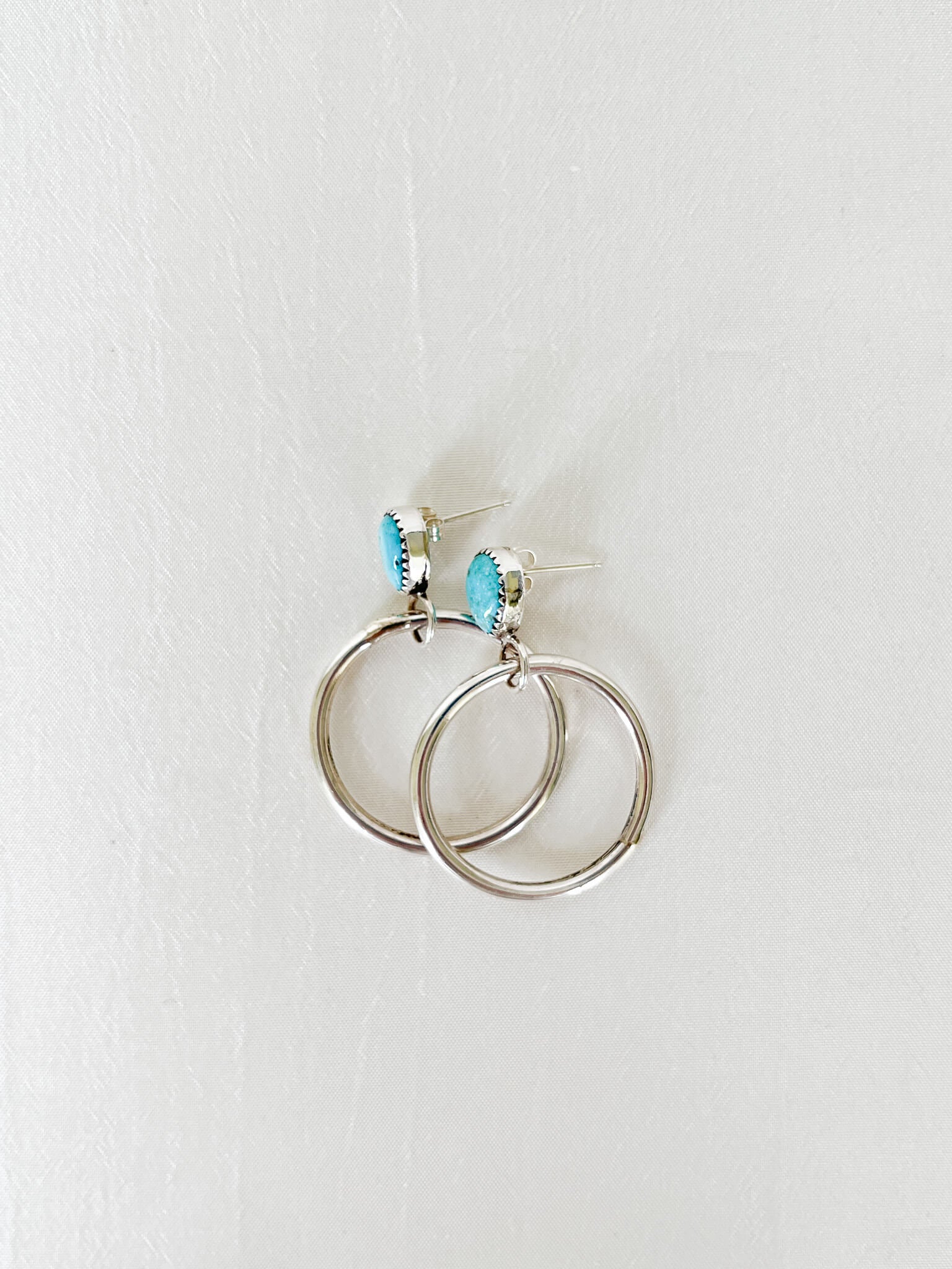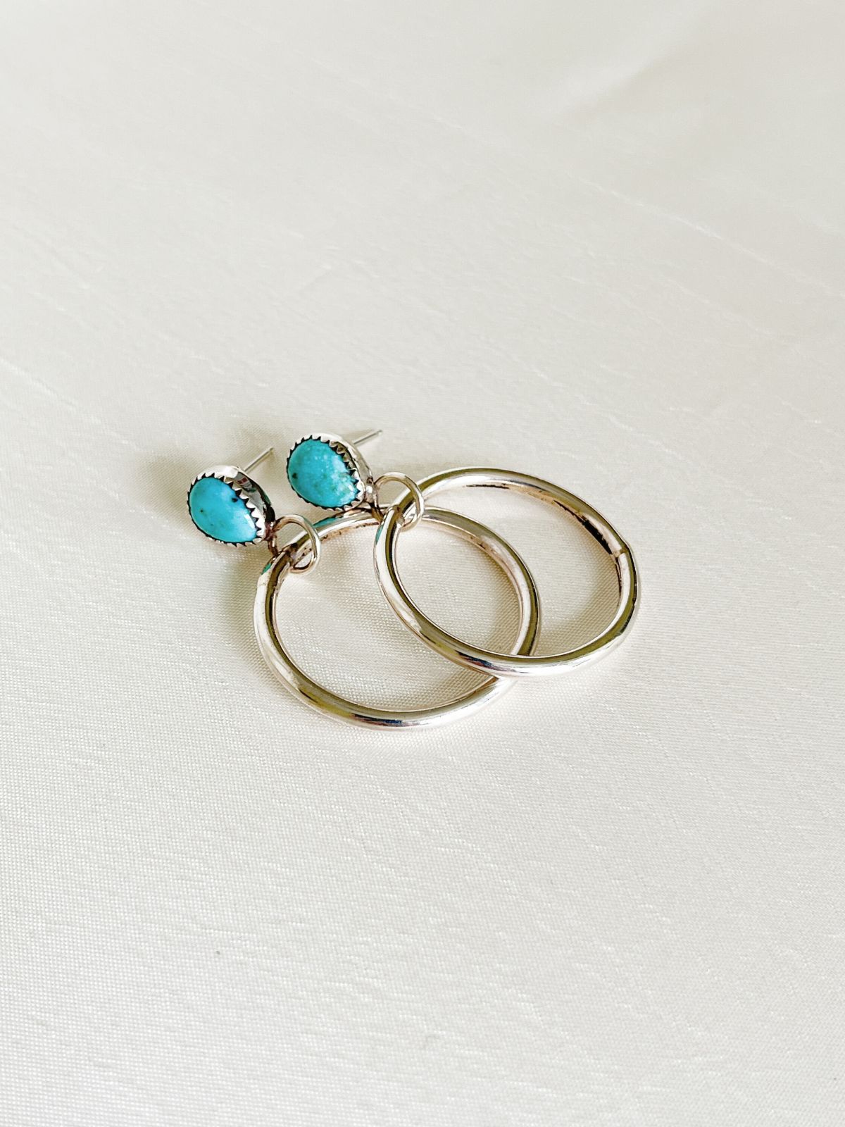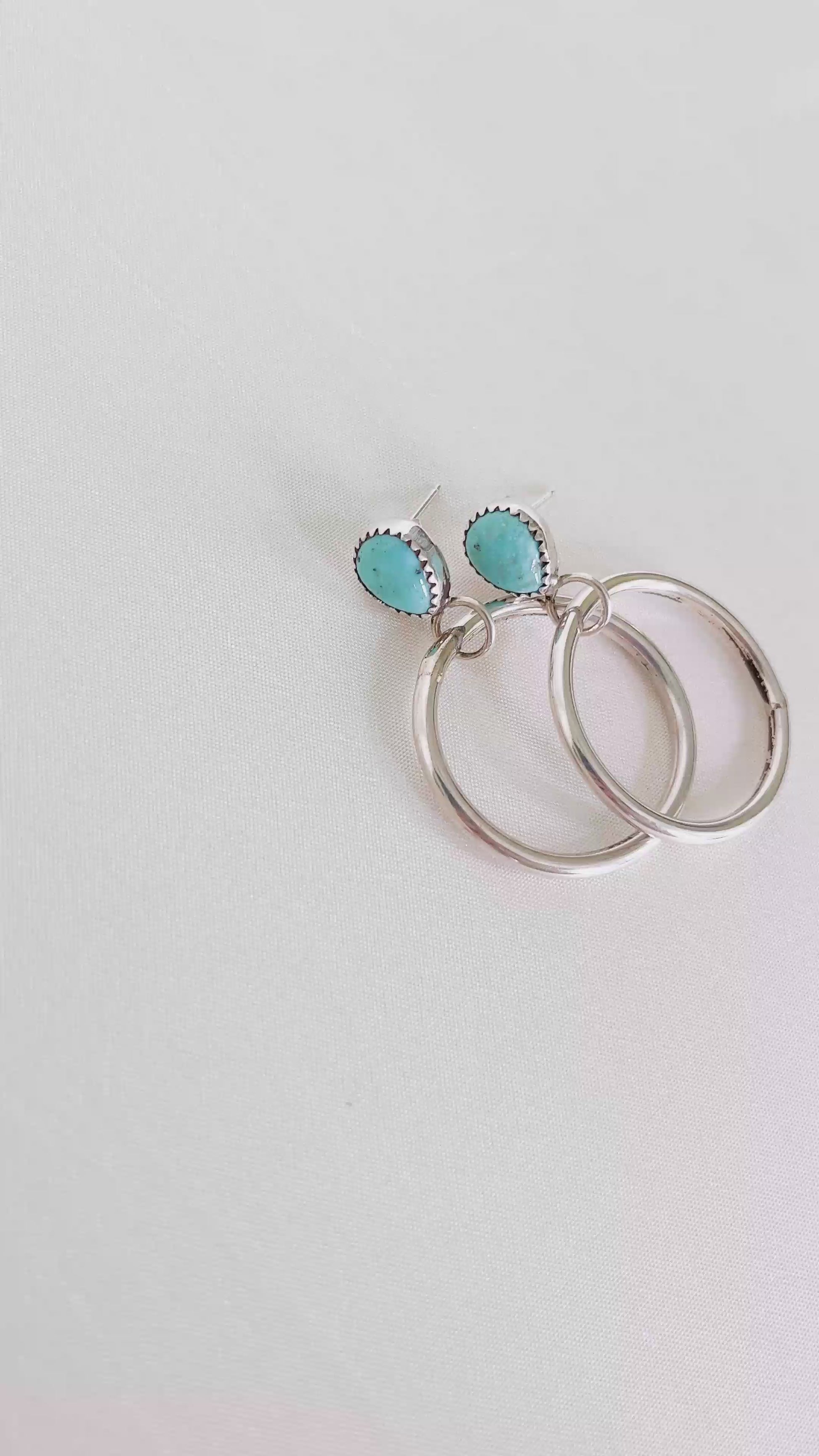 Die LINA Creolen sind aus hellblauem, birnenförmigem Türkis gefertigt. Gefertigt aus unserem mittelgroßen, massiven Creolendraht, sind sie ein klassisches Statement-Stück unter den Creolen. Der frei fließende Draht ist in die Öse eingearbeitet und verleiht ihnen einen schmeichelhaften, lässigen Look. Jedes Paar unserer Creolen wird vom Navajo-Silberschmied Anthony (USA) komplett handgefertigt und besteht aus 925er Sterlingsilber.
