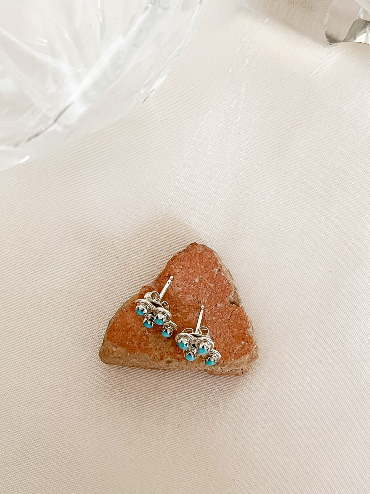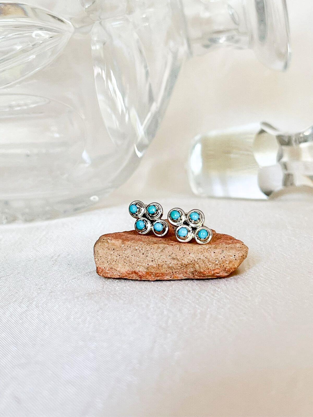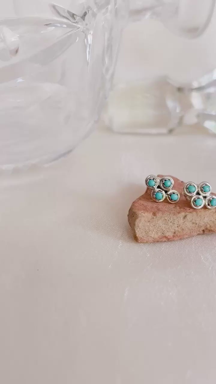 Die MOSI Vintage-Ohrstecker bestehen aus vier kleinen, runden Türkisen. Dieses Paar Türkis-Ohrstecker aus 925er Sterlingsilber wurde von einem Navajo-Silberschmied in New Mexico (USA) gefertigt.