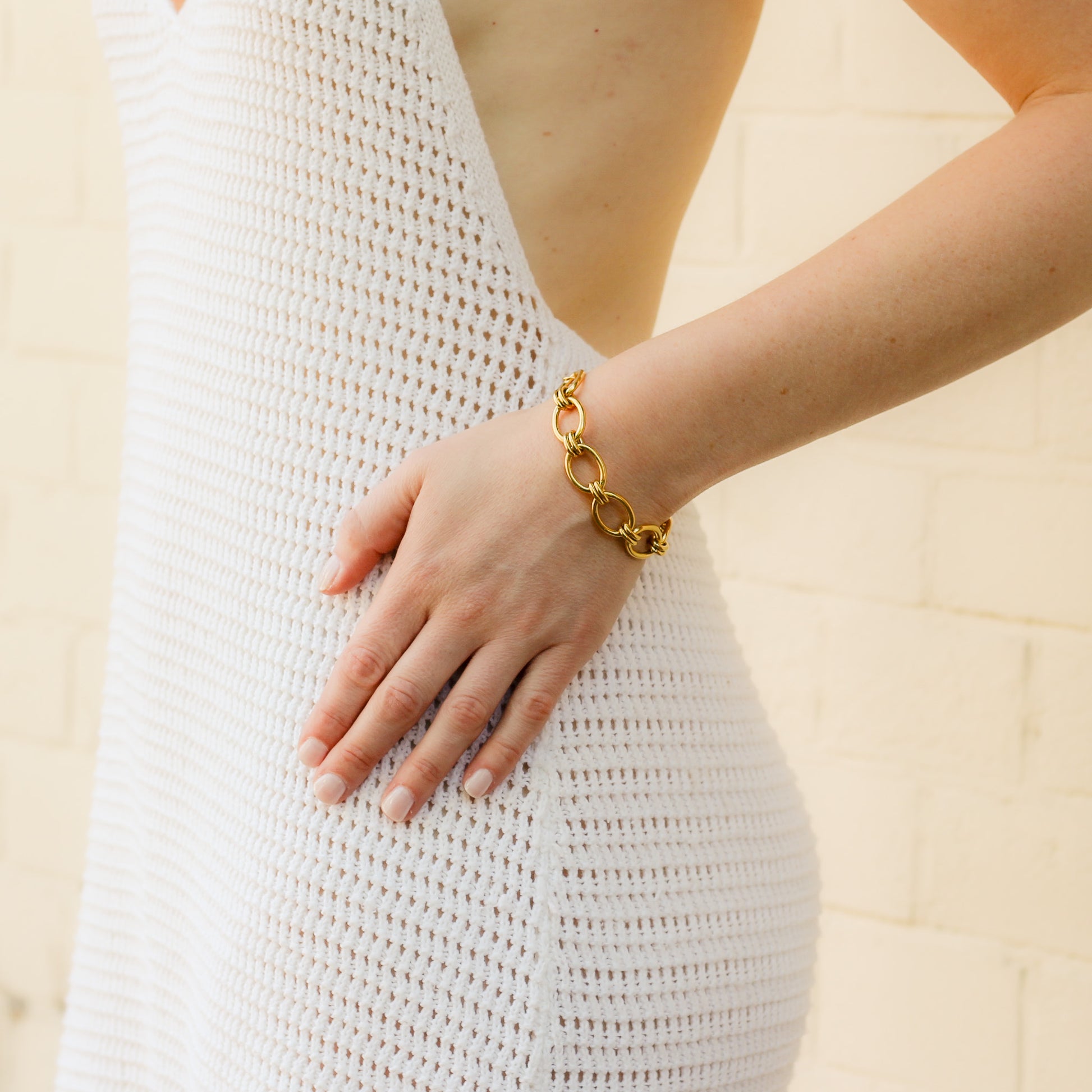 Our non-tarnish gold bracelet SELINA is a timeless, lightweight and elegant piece for everyday wear. Made from 316L stainless steel and coated with 18k gold, it is waterproof, tarnish-resistant, and hypoallergenic.