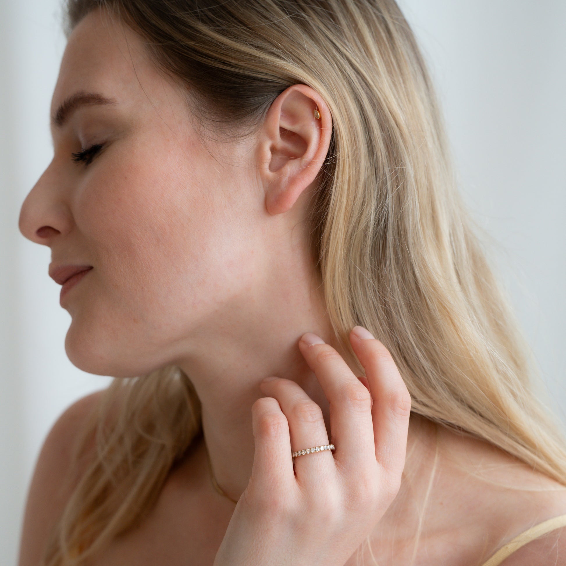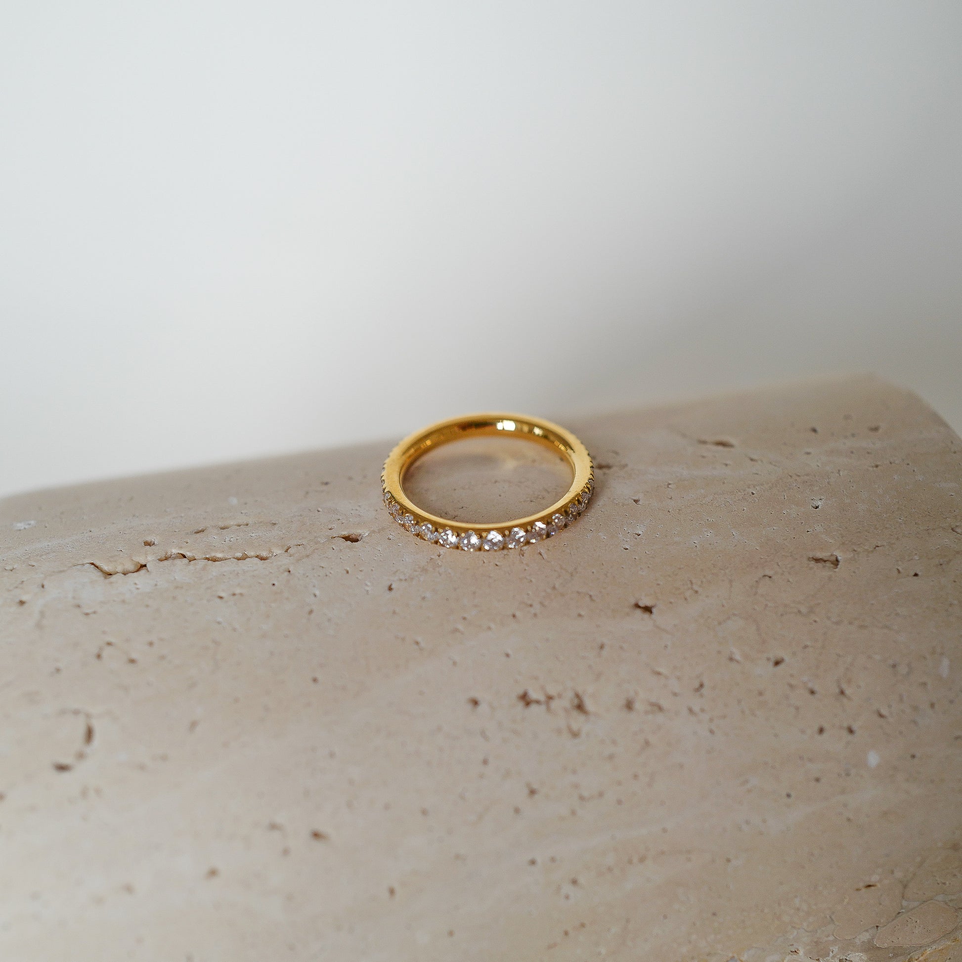 The ISEO ring is adorned with delicate cubic zirconia stones, making it perfect for stacking or wearing as a timeless statement piece. Crafted from durable stainless steel, it is designed to withstand daily wear while maintaining its shine and elegance for any occasion.
