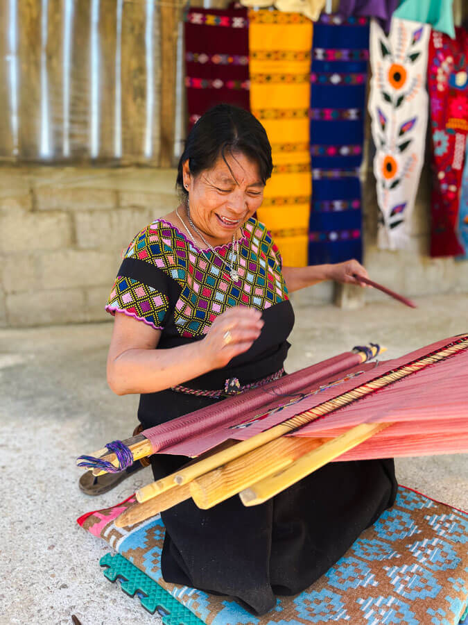 Rosa & her family are traditional artisans from Chiapas, Mexico, who master the ancient weaving technique of the "Telar de Cintura," also known as the backstrap loom.