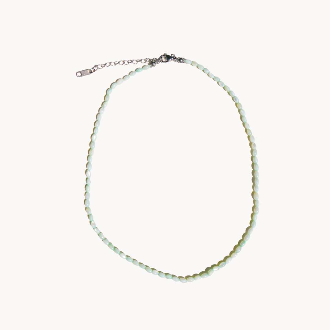Hello Summer! Meet the Puglia Necklace Collection — delicate, timeless, and made to capture the magic of the season. Made from dyed seashells in a soft sage green, this necklace is the perfect little accessory for warm summer nights—wherever they may find you.